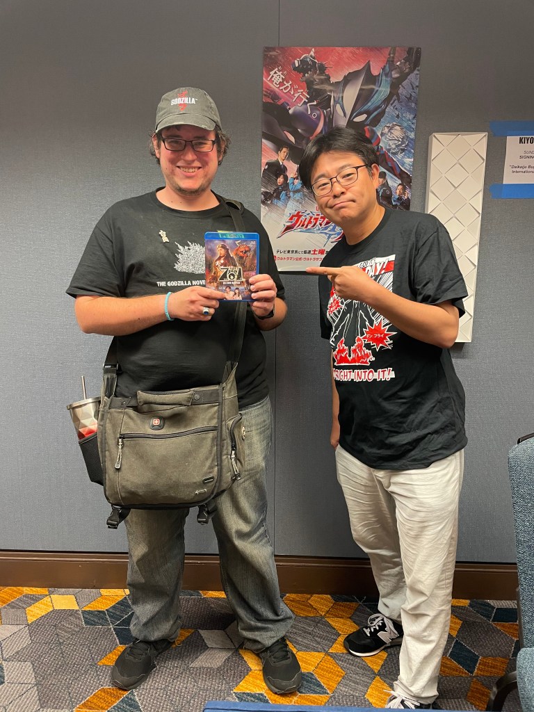 Kiyotaka Taguchi, an incredibly talented tokusatsu director who got his start on fan films and is currently directing Ultraman episodes for Tsuburaya Productions, was a last-minute addition to the guest roster. After introducing the screening of his new movie Daikaiju Bugon, I managed to sneak in an autograph between two panels I was hosting. It was a thrill to meet him!