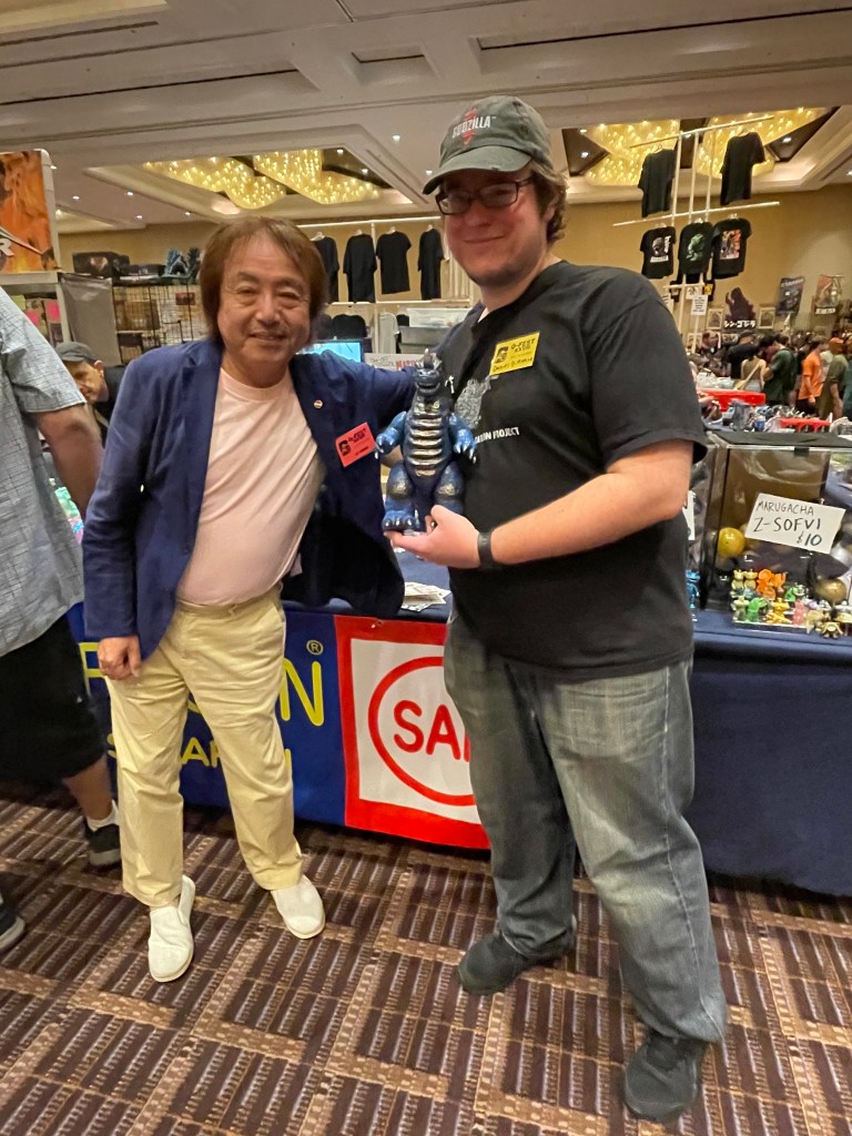 Another surprise guest was Eiji Kaminaga, President of the legendary Marusan toy company. Marusan was actually tabling in the dealers room this year, and I couldn’t pass up the chance to buy a unique original kaiju sofubi direct from the company that literally invented the art form. Kaminaga-san was kind enough to sign the figure’s foot for me. How cool is that?